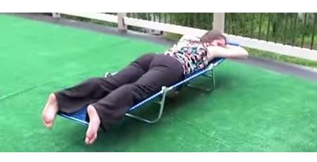 Ona je na ležaljci napravila rupu za stomak koja joj je omugućila da legne kako ona želi.