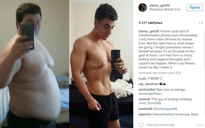 Posle samo svega 6 meseci, Deni je stigao na 114 kilograma, a sada ima 76 kilograma.