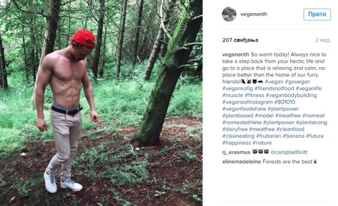 "Da biste dobili mišiće nije potrebno da jedete životinje. Nikada mi nije bilo teško da održavam težinu, ali sam jači i zdraviji nego ikad otkako sam postao vegan", rekao je Entoni.