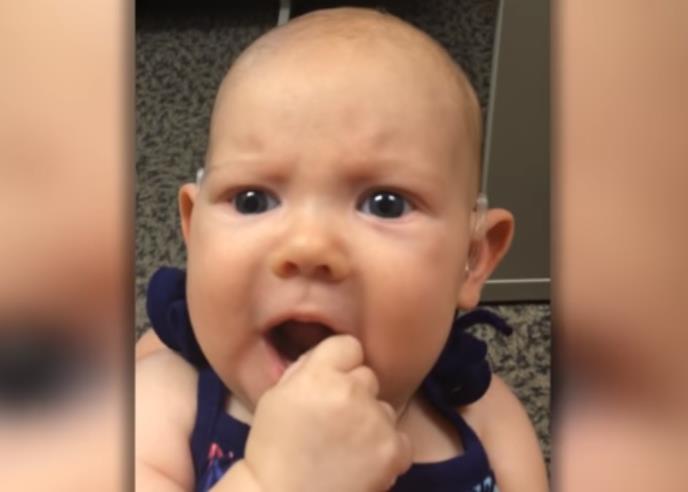 Tromesečnoj bebi dijagnostikovan je poremećaj sluha pa su joj data dva slušna aparata. Pogledajte njene prve reakcije na zvuk majčinog glasa.