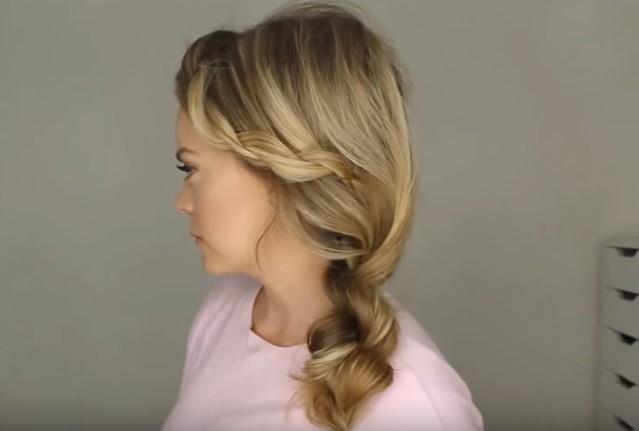 Savet: Ako niste vešti s pletenjem kose, omotani prednji i zadnji deo kose kod korena zasebno zavežite gumicom, te ih tek onda krenite motati zajedno. Kada spletete pletenicu prerežite obe gumice makazama.