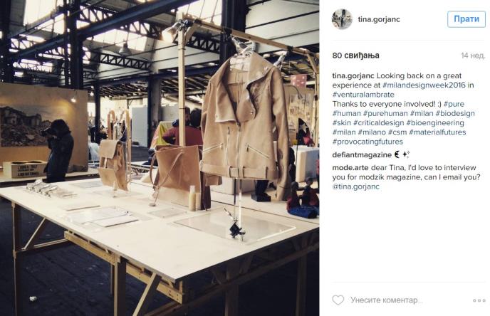 "Mislim da je ovaj proces zaista dobra alternativa sadašnjem pravljenju proizvoda od kože. Prvo što je etički ispravnije jer ne zahteva pokolj životinja, drugo jer nema nepotrebnih nusproizvoda i održiviji je u tom smislu, a treće jer može da se radi na zahtev i mogao bi delimično da reši problem nestanka resursa. Već postoje kompanije koje razvijaju takve materijale i verujem da je to jedna od potencijalnih alternativa za budućnost", rekla je Gorjanc.