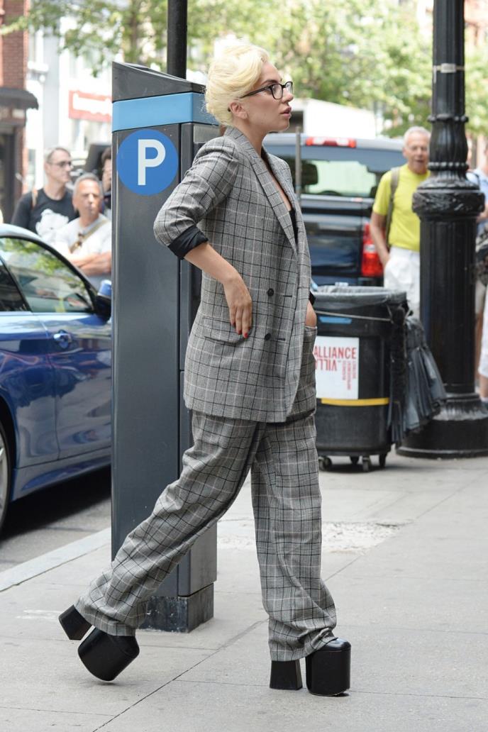 Gaga je uslikana u Njujorku dok je napuštala svoj apartman, a na sebi je imala sivo odelo, dok je od obuće nosila crne cipele sa ogromnom štiklom i platformom.