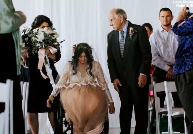 Do ulaza u crkvu došla je kolicima. Kada je ustala iz kolica i uz pomoć mame i dede prošetala do oltara, svi su zaplakali, uključujući i mladoženju.