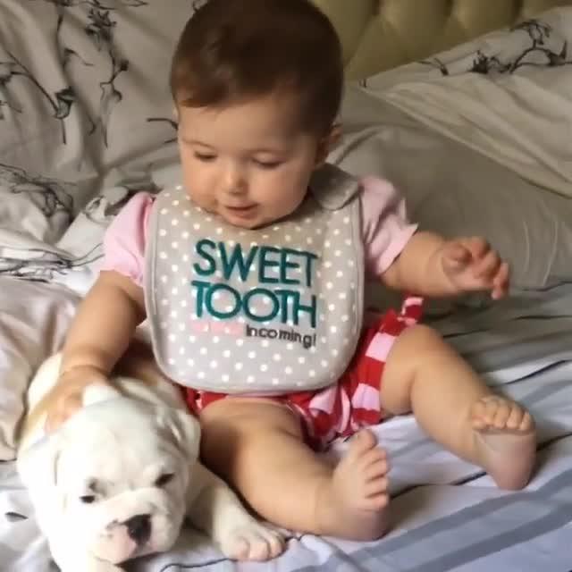 Beba i kuca uživali su druženju, a kamerman je zabeležio ovaj predivan momenat.