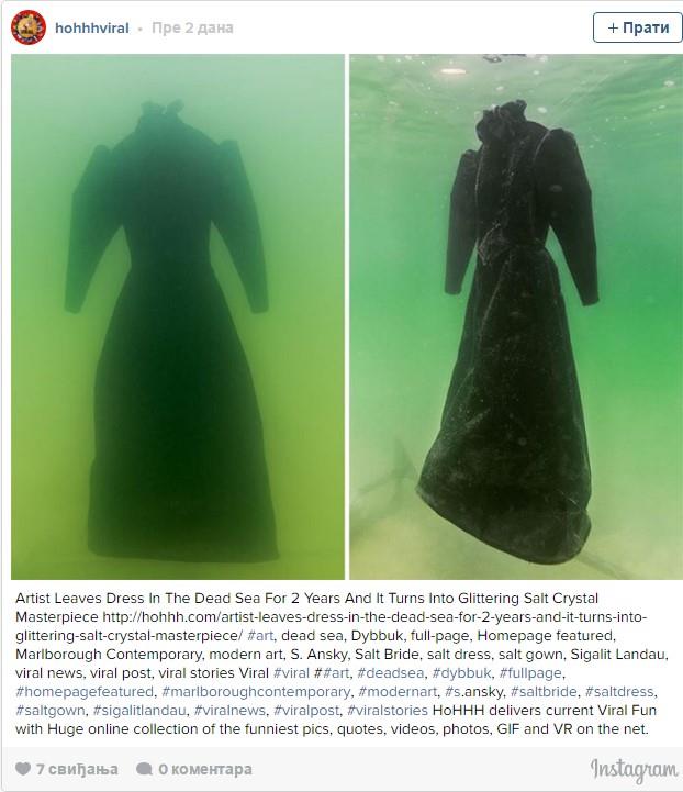 Izraelska umetnica Sigalit Landau je odlučila da za svoj projekat pod nazivom „Mlada od soli“ potopi crnu haljinu u Mrtvo more. Ona je tamo provela dve godine i krajnji rezultat je neverovatan!