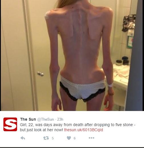 Hana, koja je pobedila anoreksiju i postala mnogima uzor, nosila je konfekcijski broj kao desetogodišnja devojčica i imala je indeks telesne mase 11, dok je normalan za njen uzrast između 18 i 24.