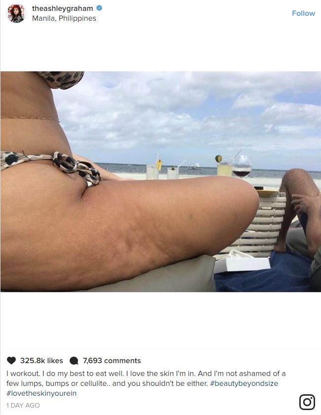 Plus sajz manekenka Ešli Grejem razbija tabue svojim izgledom. Ona se trenutno odmara na Filipinima, a sada se pohvalila fotografijom u bikiniju na kojoj se jasno vide njene noge koje imaju dosta celulita.