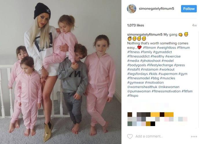 Pri samom pogledu na njeno isklesano telo teško je poverovati da je tridesetpetogodišnja Simon Gejtli iz za deset godina rodila čak petoro dece.
