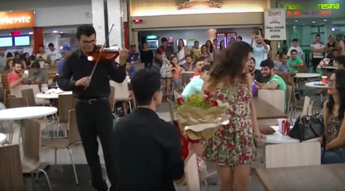On je čak iznajmio i violinistu. Nesrećni momak je kleknuo i izvadio prsten, ali njegova izabranica nije bila preterano oduševljena.