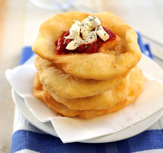 Napravite osnovno testo za picu od 800 gr brašna, pa podelite u deset loptica. Rastanjite i neka stoje desetak minuta, pa pržite na podmazanom tiganju sa svake strane dok ne porumeni. Kad sve ispržite, mažite jednu po jednu kečapom (treba vam oko 300 gr) i pospite kačkavaljem (300 gr), pospite origanom, biberom i sušenim bosiljkom, pa tako namazane spustite svaku na tiganj na kratko, dok se kačkavalj ne otopi.