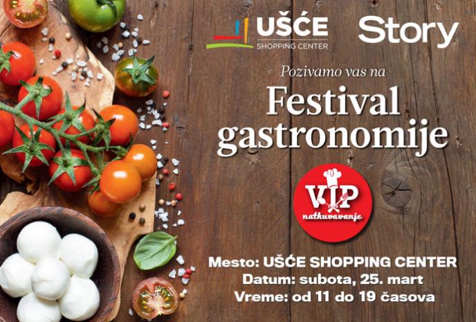 U subotu, 25. marta, od 11 do 19 časova u UŠĆE Shopping Centru očekuje vas atraktivan zabavni program, kuvanje s decom, degustacija hrane i brojni pokloni na Festivalu gastronomije i Story VIP natkuvavanju koje počinje u 14 časova. Da su najbolji kulinari među svojim kolegama, poznate ličnosti moraće da dokažu na zanimljivom događaju koji magazin Story organizuje u saradnji sa UŠĆE Shopping Centrom.