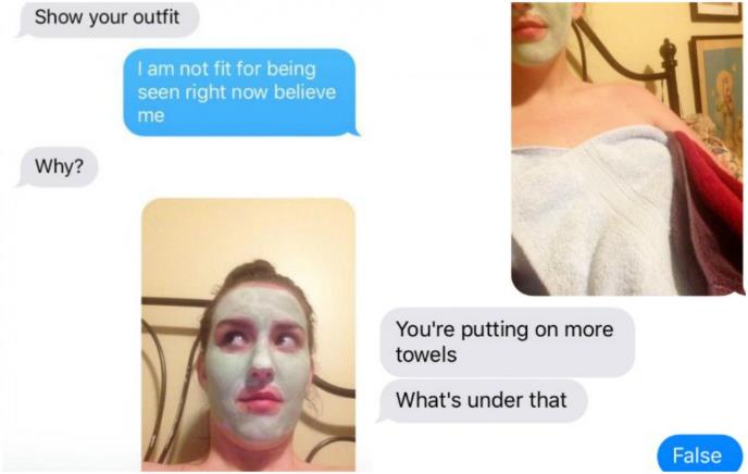 Razgovor je počeo veoma naivno i pitao ju je pitao šta nosi, da bi mu ona poslala fotku na kojoj ima masku za lice.