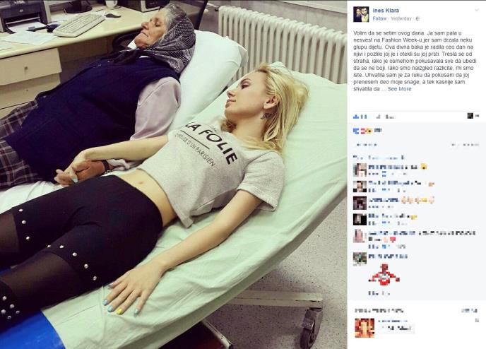 "Volim da se setim ovog dana. Ja sam pala u nesvest na Fashion Week-u jer sam držala neku glupu dijetu. Ova divna baka je radila ceo dan na njivi i pozlilo joj je i otekli su joj prsti. Tresla se od straha, iako je osmehom pokušavala sve da ubedi da se ne boji. Iako smo naizgled različite, mi smo iste.