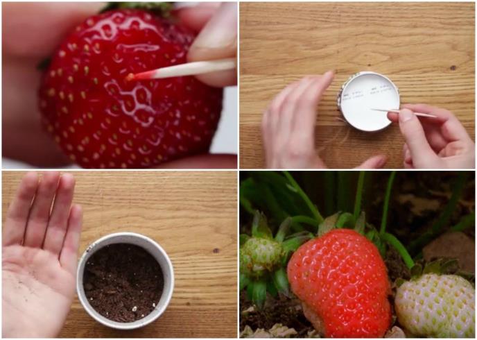 U čašu sipajte malo zemlje i dodajte semenke i zalijte. Za šest nedelja jagode će početi da rastu i cvetaju, i biće potrebno da ih presadite u veću saksiju.