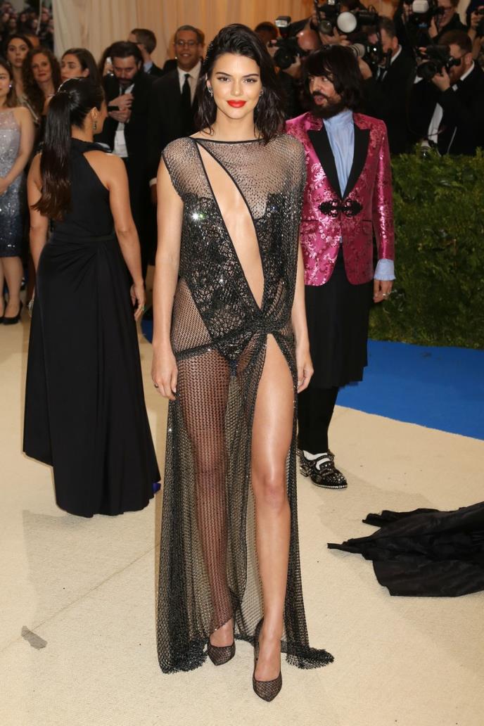 Kendal se pojavila u izazovnoj, providnoj haljini, koja je bila ukrašena sa 85.000 kristala. Manekenka je ušetala u providnoj haljini, bez bruhaltera, a akcenat njenog izgleda bio je na zadnjici.