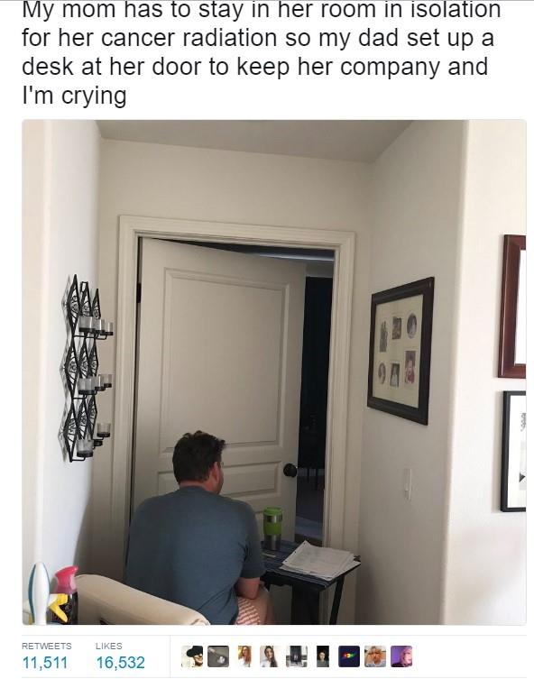 Čak je ispred sobe preneo svoj radni sto kako bi radio, ali nadgledajući svoju suprugu. Fotografija je za kratko vreme podeljena oko 7.000 puta.
