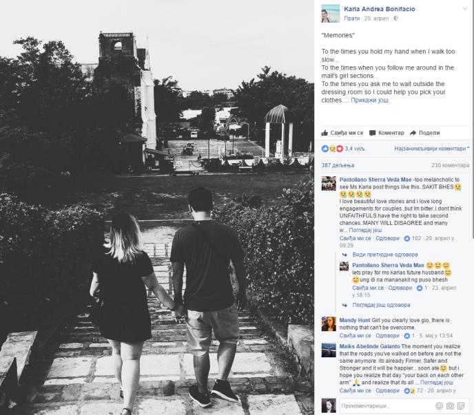Karla Andrea Bonifaćo je pronašla način da preboli raskid sa Điom i tim povodom na svom Fejsbuk profilu objavila veoma emotivan post.