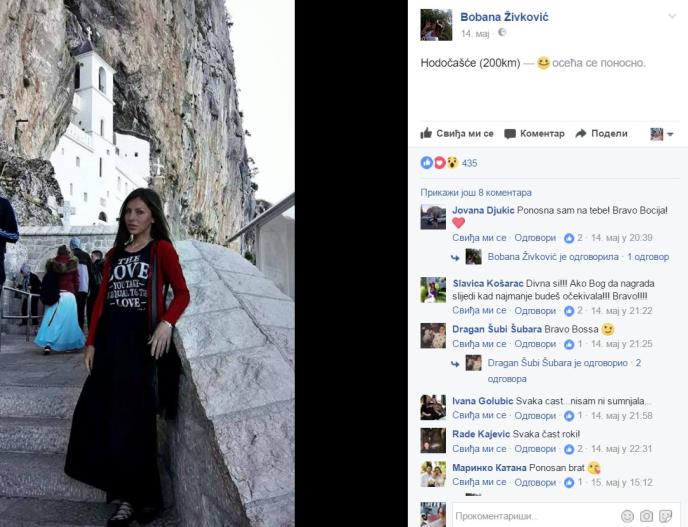 Bobana je išla do Manastira Ostrog sa još petnaest saputnika-hodočasnika, muškaraca i učinila je sve da istraje na svom putu.