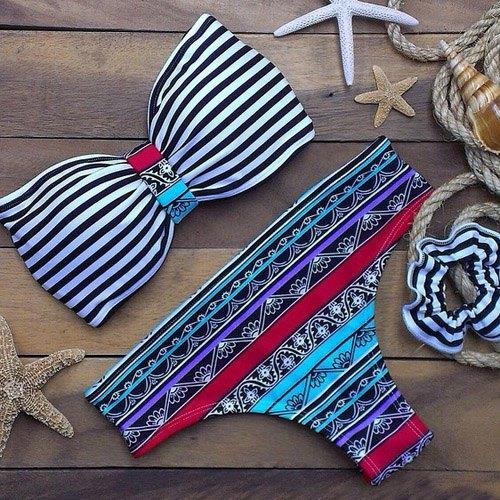 Šta je potrebno za leto, kao najvažniji detalj? Dobar kupaći kostim! Ovaj upečatljivi bikini sa geometrijskim printom i „etno“ motivima je pravi pogodak. Gornji deo je bez bretela i fišbajna, kači se pozadi na plastičnu kukicu i ima korpe koje mogu da se skinu. Donji deo kupaćeg kostima je visoko sečen i izdužuje liniju nogu, dok gornji deo ovog bikinija rasporedom linija vizuelno uvećava dekolte. Njegova cena je 2400 rsd, a OVDE ga možete naručiti.