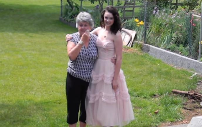 Bila je obučena u haljinu koju je njena baka nosila na maturi, davnih 50-ih godina. Tu haljinu joj je baka poklonila još dok je bila mala, ali je mislila da se ona sa njom samo igra. Međutim, grdno se prevarila.