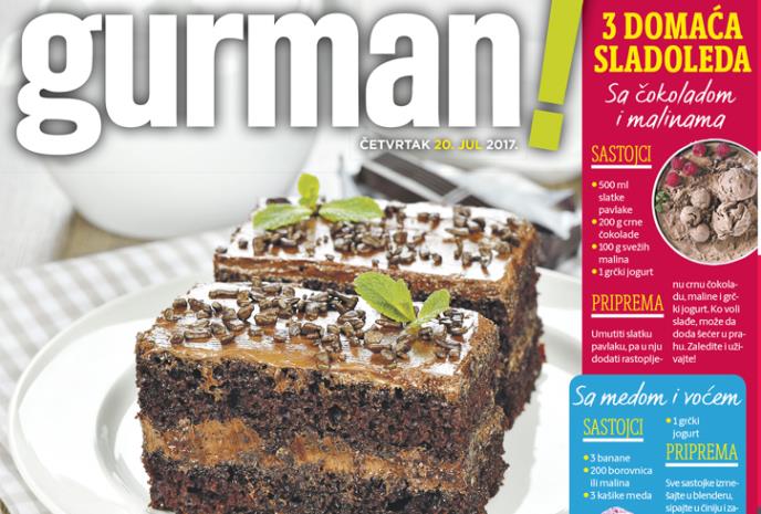 U današnjem poklon dodatku Gurman pronaći ćete slatkaste letnje recepte kojima ćete teško moći da odolite: za čokoladnu tortu, limun sladoled, krempite sa keksom, baklave sa višnjama itd.