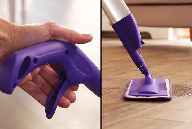 SPRAY MOP ima ugrađen rezervoar za tečnost u koji možete sipati vodu ili bilo koje drugo sredstvo za čišćenje. Aktivira se pritiskom ručice na vrhu mopa i na taj način se kontroliše količina tečnosti koja će izaći.