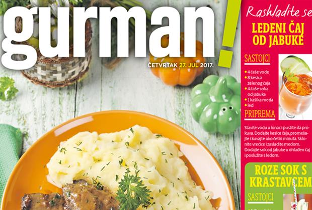U današnjem poklon dodatku Gurman pronaći ćete ukusne recepte po preporuci vrsne domaćice, bake Lele: šnicle na ciganski način, kiflice sa sirom bez margarina, boranija zapečena u rerni, kao i makarone sa šunkom i kikirikijem itd.