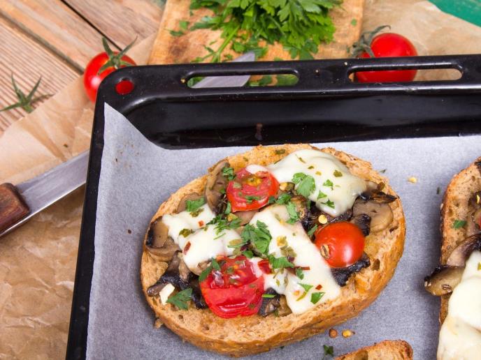 Pripremite ukusne hrskave bruskete sa pečenim pečurkama i paprikom.