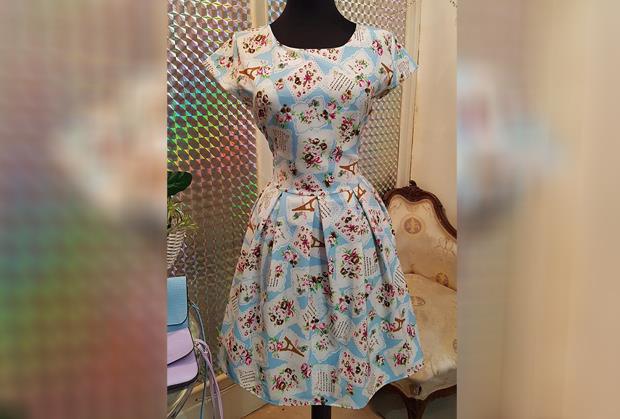 Ova haljina odiše stilom Pariza! Vrlo je elegantna, svedena i zbog svog “A” kroja odlično pristaje svim tipovima građe. Kratkih je rukava, struk je blago naglašen. Jako je nežnih boja, vrlo interesantnog dezena i u ovoj haljini ne možete proći neopaženo. Njena cena je 2700 rsd, OVDE je možete poručiti, ili pozivom na broj telefona 011/4420-502.