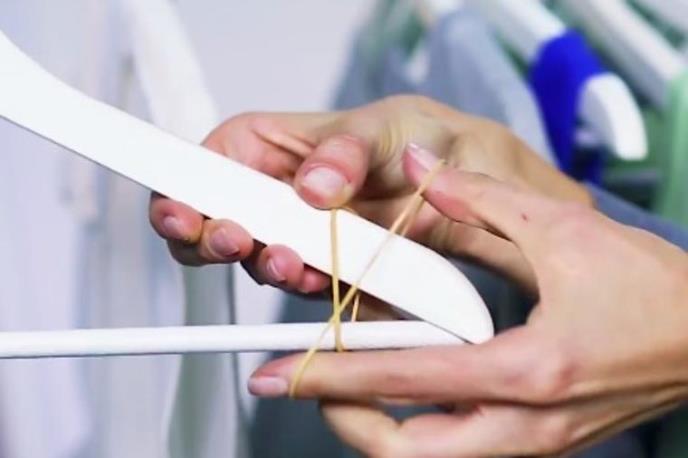 Sigurno u svom ormanu imate barem jedan komad odeće koji stalno spada sa ofingera. Da biste to sprečili, dovoljno je da na ivice ofingera stavite dve obične gumice za tegle i one će držati na mestu vašu garderobu.