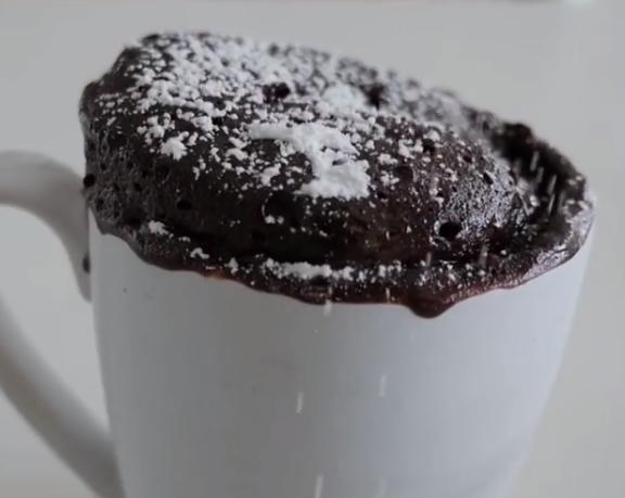 U dubljoj činiji pomešajte sve sastojke, sipajte u šolju koja je dobra za grejanje u mikrotalasnoj, stavite je u nju i za 90 sekundi ćete imati gotov kolač.
