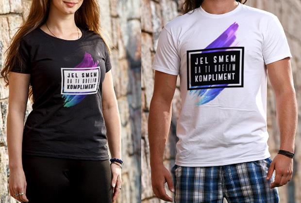 ov zakon o udvaranju je stupio nedavno na snagu. Kreativni ljudi rešili su da se našale na račun istog originalnim natpisom na majici. Majica sa natpisom Jel smem da ti udelim kompliment je pravi hit! Ova majica će preneti poruku okolini, bez reči. Majice su dostupne u svim veličinama, muškoj i ženskoj varijanti i u dve boje - crnoj i beloj. Ukoliko je vaš favorit bela majica, OVDE je možete poručiti za 1400 rsd, a ukoliko želite crnu majicu, OVDE može postati vaša za 1500 rsd. Ili poručite telefonom na broj 011/4420-502.