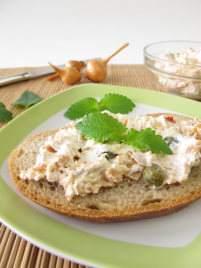 - Puter penasto umutite, a tvrdo kuvana jaja i tunjevinu sitno isecite ili izgnječite viljuškom.