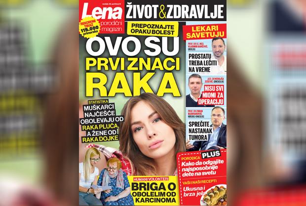 Tema sutrašnjeg broja magazina Lena je kancer. Statistika kaže da muškarci najčešće obolevaju od raka pluća, a žene od raka dojke. Za Lenu govori prof. dr Zoran Radovanović, hirurg-onkolog, koji vas savetuje o načinima kako sprečiti nastanak tumora.