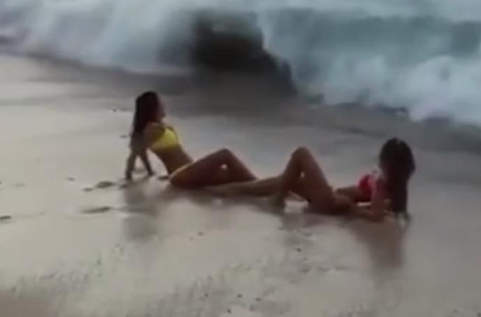 Dve devojke iz Velike Britanije su požele da se slikaju sa nadolazećim talasom.