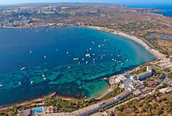 Najbolja vest je zapravo da je u hotelu Mellieha Bay gratis boravak za dvoje dece! Hotel ima 4 zvezdice, udaljen je od mesta Mellieha samo 3 km, a od Valete, glavnog grada Malte oko dvadesetak kilometara (koliko je udaljen i od samog aerodroma). Hotel poseduje svoju plažu do koje se dolazi stepenicama, a na neznatnoj je udaljenosti od gore spominjane i hvaljene plaže Ghadira. Takođe, može se pohvaliti i odličnom lokacijom u odnosu na autobusku stanicu javnog prevoza, što gostima omogućava lak obilazak ostatka ostrva, kao i blizinom terminala za trajekt kojim se odlazi na obilazak druga dva, po veličini i značaju najveća ostrva – Gozo i Komino.