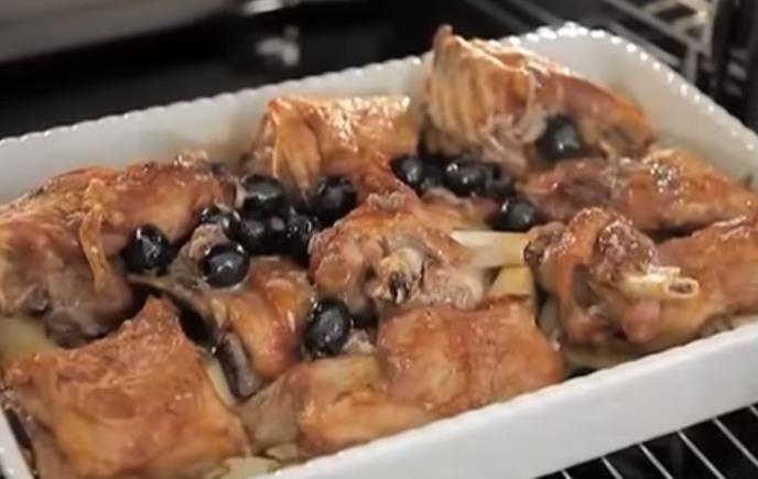 Preko krompira složite komade mesa, prelijte belim vinom, posolite i stavite u prethodno zagrejanu rernu na 200 C. Za to vreme filete inćuna iseckajte i stavite u činiju, zatim sipajte sirće, iseckajte i sipajte preostali beli luk, dodajte seckani ruzmarin i masline i pomešajte sastojke.