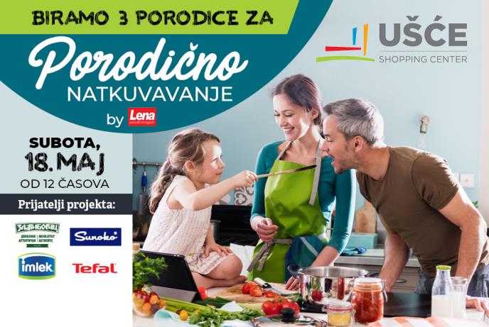 Kulinarski događaj “Porodično natkuvavanje by Lena”, namenjen celoj porodici, održava se 18. maja od 12 časova u šoping centru “Ušće”. Tim povodom sve posetioce očekuju veoma atraktivan zabavni program, brojna takmičenja, kreativna radionica za decu, kao i vredni pokloni.
