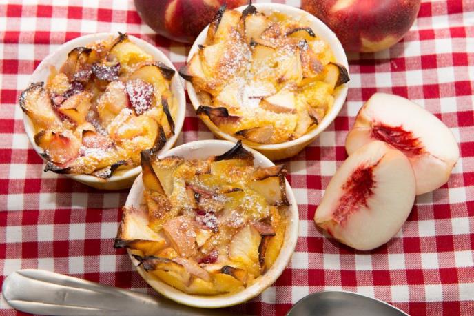 Stavite treću koru takođe premazati filom i na dnu poređajte oljuštene breskve.
