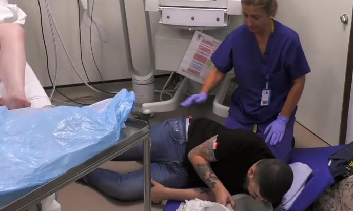 "Kad sam saznao da čekamo dete, iznenadilo me je koliko emotivan mogu biti, a to me stanje još nije popustilo", ispričao je Ben pre kraja porođaja. Onda se "pohvalio" kako je zbog verenice odlučio "biti jak" i očvrsnuti, kao "pravi muškarac". Čim je izgovorio te reči, Ben je pao u nesvest i srušio se na pod, a šokirana Ejmi je povikala: "Je li se to on upravo onesvestio?"