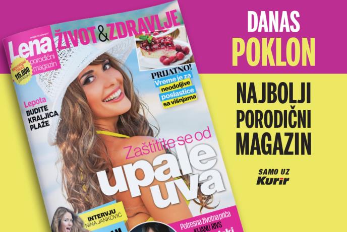 Tokom velikih vrućina mnogi pronalaze utočište na morima, jezerima, rekama ili bazenima, ali ukoliko ne pazite, veoma lako može doći do bolne upale uva. U novoj Leni imaćete prilike da naći ćete savete kako to da sprečite. U rubrici o lepoti pročitajte kako da vas zapaze na plaži. Čeka vas i intervju sa ponosnom mamom, glumicom Ninom Janković: Ja sam sinu najveća igračka. Poklanjamo vam i ukusne recepte za osvežavajuće poslastice sa višnjama.