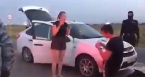 Snimak nastao u Rusiji pokazuje kako je organizovao napad s "otmičarima" koji su nosili maske na licu, te buduću mladu izvukli iz automobila i bacili je na haubu derući se na nju i preteći joj pištoljem.