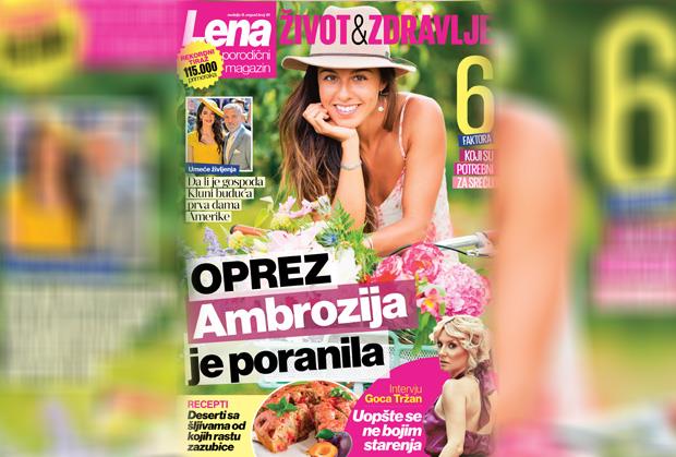 U novom broju magazina Lena, koji će čitaoci Kurira, sutra dobiti na poklon uz svoje omiljene dnevne novine, otkrivamo šest faktora koji su neophodni za sreću! Donosimo i savete stručnjaka za ambroziju, koja je ove godine poranila, saznajte kako se uspešno zaštiti. Pročitajte ekskluzivni intervju sa Gocom Tržan: “Uopšte se ne boljim starenja”, kao i umeće življenja gospođe Kluni. Plus nezaobilazni recepti, ovog puta - deserti sa šljivama od kojih rastu zazubice!