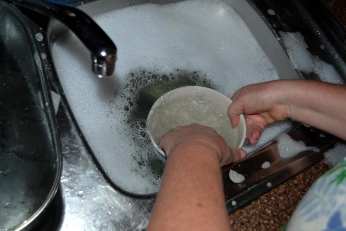 Opisala je kako to rade Bosanci. Kažu da sipaju pun sudoper vode, zatim stavljaju malo deterdžent i u tu vodu stavljaju posuđe, zajedno sa kašikama, a zatim ga trljaju sunđerom. Priznala je da joj je muka i puta se kako se Bosanci još nisu potrovali.