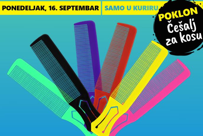 Svaki čitalac dnevnih novina Kurir u ponedeljak, 16. septembra, dobiće na poklon ČEŠALJ ZA KOSU, potrebno je samo da izaberete boju.