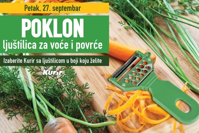Svaki čitalac dnevnih novina Kurir u petak, 27. septembra, dobiće na poklon LJUŠTILICU ZA VOĆE I POVRĆE sa mini-rendetom. Idealna je za ljuštenje svih namirnica sa korom, kao što su jabuke, kruške, krompir, krastavac ili za pravljenje trakastih ukrasa za salate od šargarepe ili nekog drugog povrća. Na ljuštilici se nalazi i mini-rende, pa je pvaj poklon i multipraktičan.
