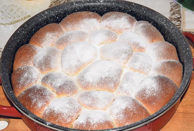 3. Zamotajte, spojte dobro krajeve da nadev ne curi i svaku buhtlu jednu do druge složite u posudu premazanu maslacem i pustite da se odmori još 15 minuta. Nakon toga testo premažite umućenim jajetom da bi dobilo lepu boju.
