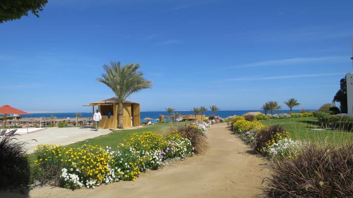 Mercure Hurghada poznat je po svojoj prelepoj privatnoj peščanoj plaži, dugoj 700 metara, koja postepeno uranja u tirkizne boje mora. Ležaljke i suncobrani od trske na rapolaganju su gostima hotela bez doplate.