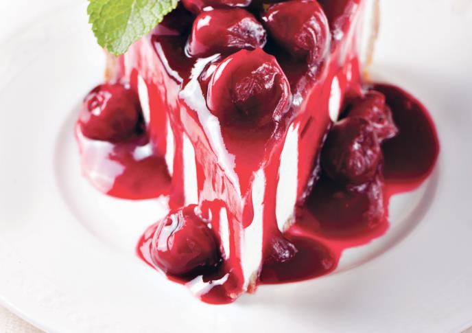 3. Za preliv očistite višnje, ukuvajte ih sa 4 dl vode i dodajte šećer, a u 1 dl vode razmutite puding od maline, pa kada voda s višnjama provri, ukuvajte ga kao puding. Mlak preliv prelijte preko krema od sira.